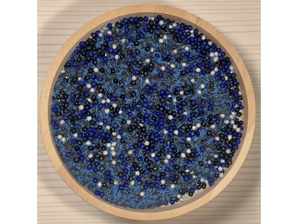Tenhle mix cizrny a rýže hraje pestrými barvami, krásně se sype a je neodolatelný pro dětské zvídavé ručičky.