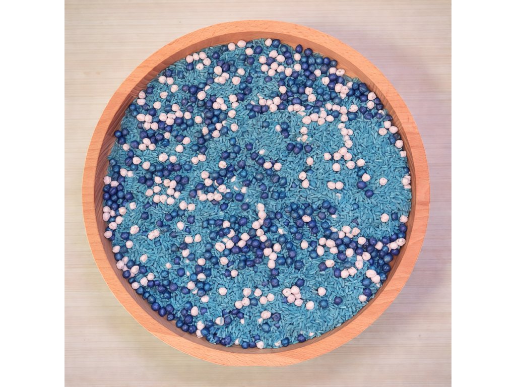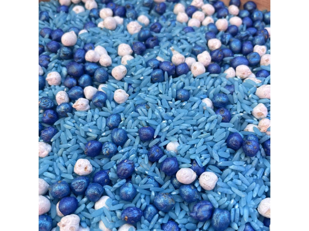 Tenhle mix cizrny a rýže hraje pestrými barvami, krásně se sype a je neodolatelný pro dětské zvídavé ručičky.