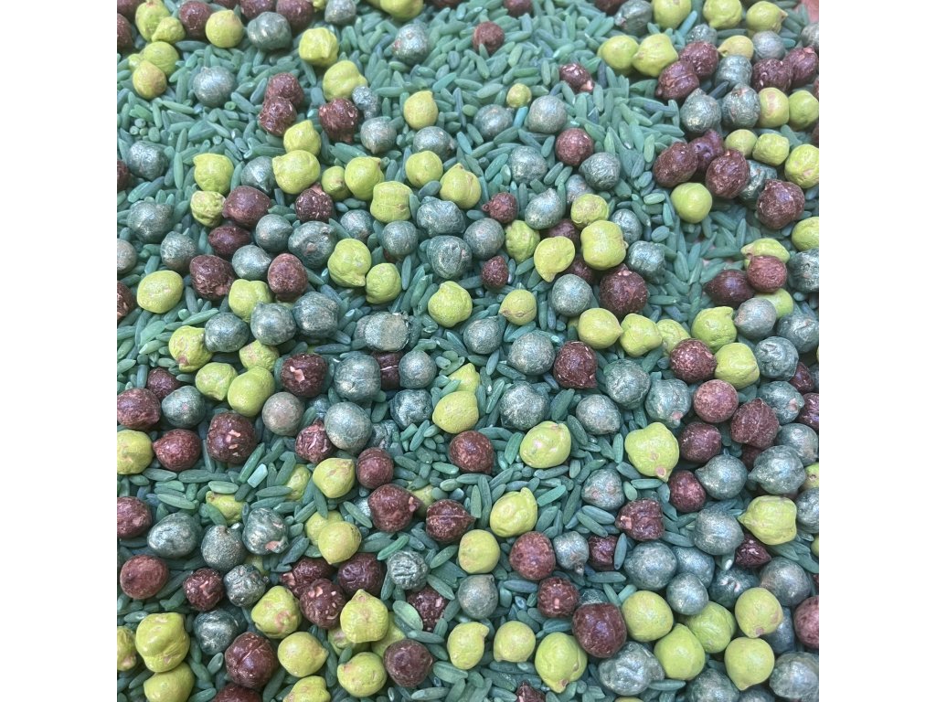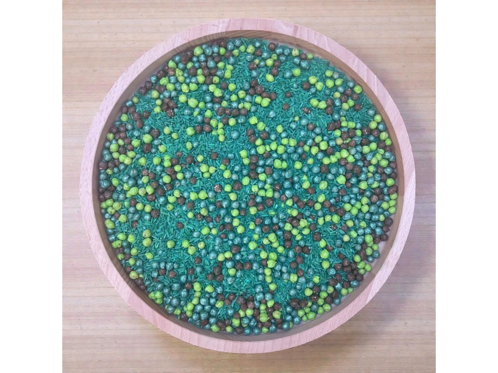 Tenhle mix cizrny a rýže hraje pestrými barvami, krásně se sype a je neodolatelný pro dětské zvídavé ručičky.